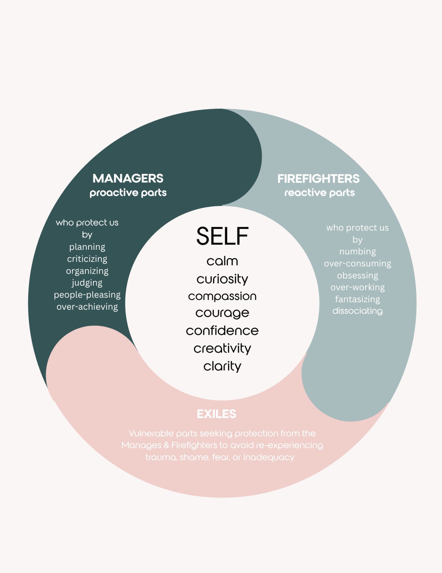 Often these well-meaning parts take on protective roles—trying to shield us from discomfort, but ultimately leaving us feeling more stressed and disconnected from our authentic selves.